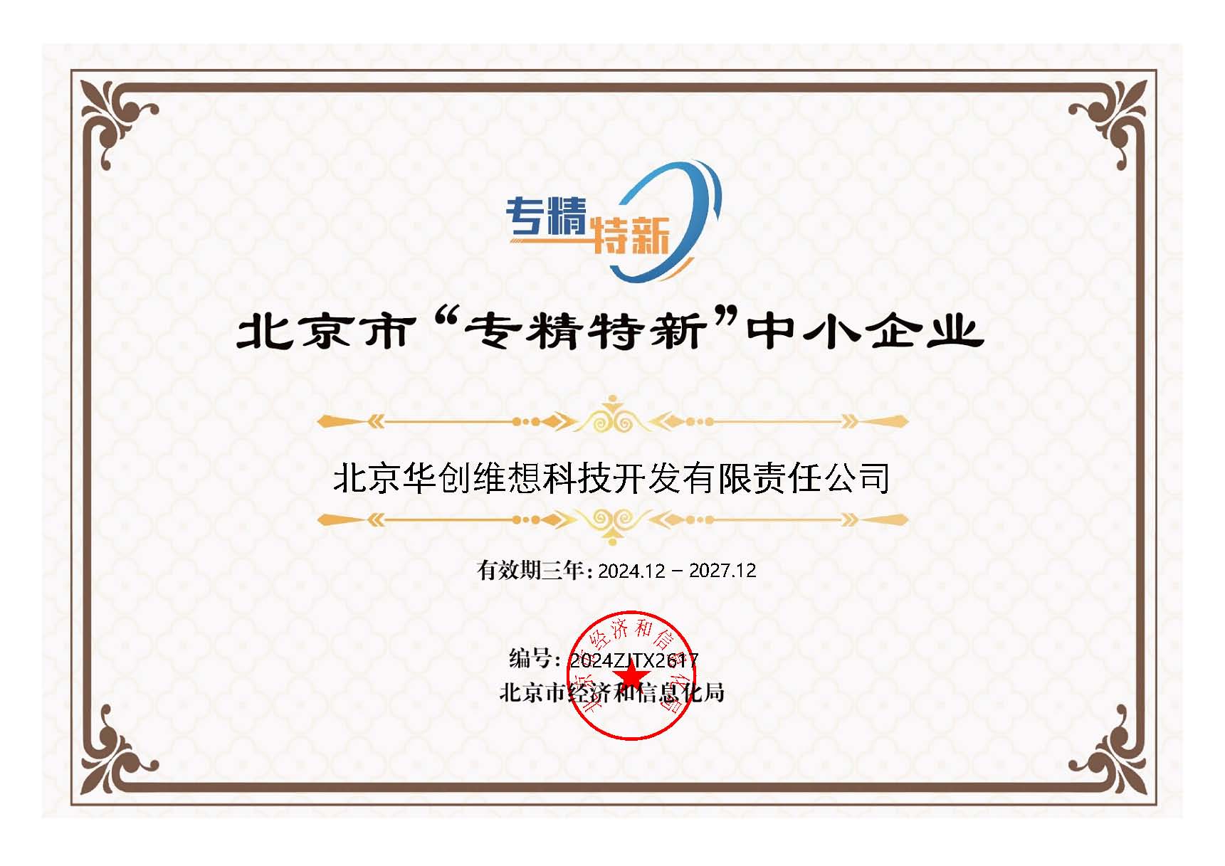 喜報(bào)—華創(chuàng)維想獲得北京市“專(zhuān)精特新”中小企業(yè)證書(shū)